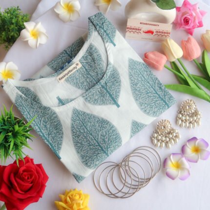 Made from breathable cotton, the kurta ensures all-day comfort, and its sleeveless cut lends a contemporary flair. Ideal for pairing with jeans for a casual look or with a palazzo for a more polished ensemble, this kurta combines modern style with classic sophistication.